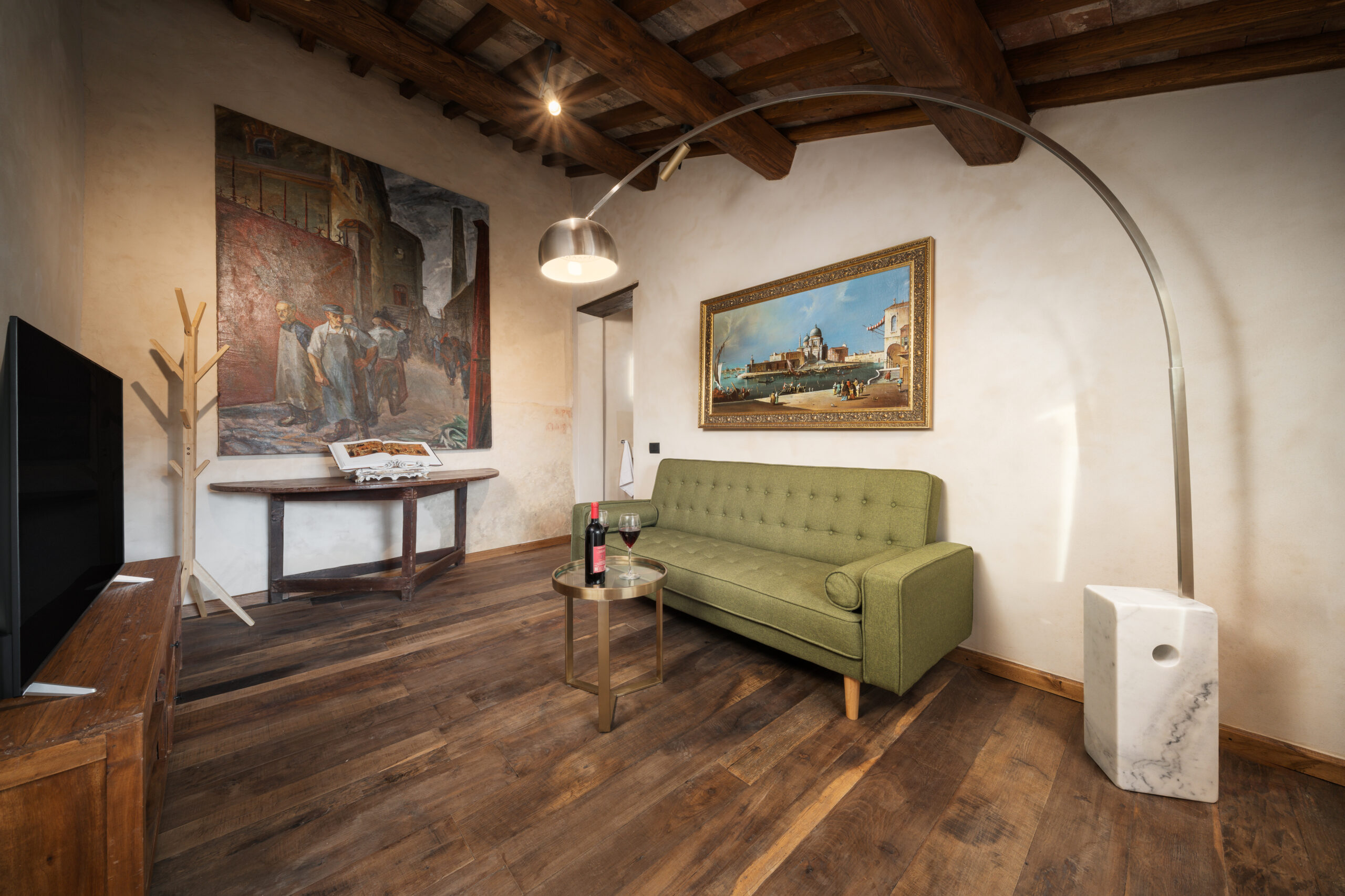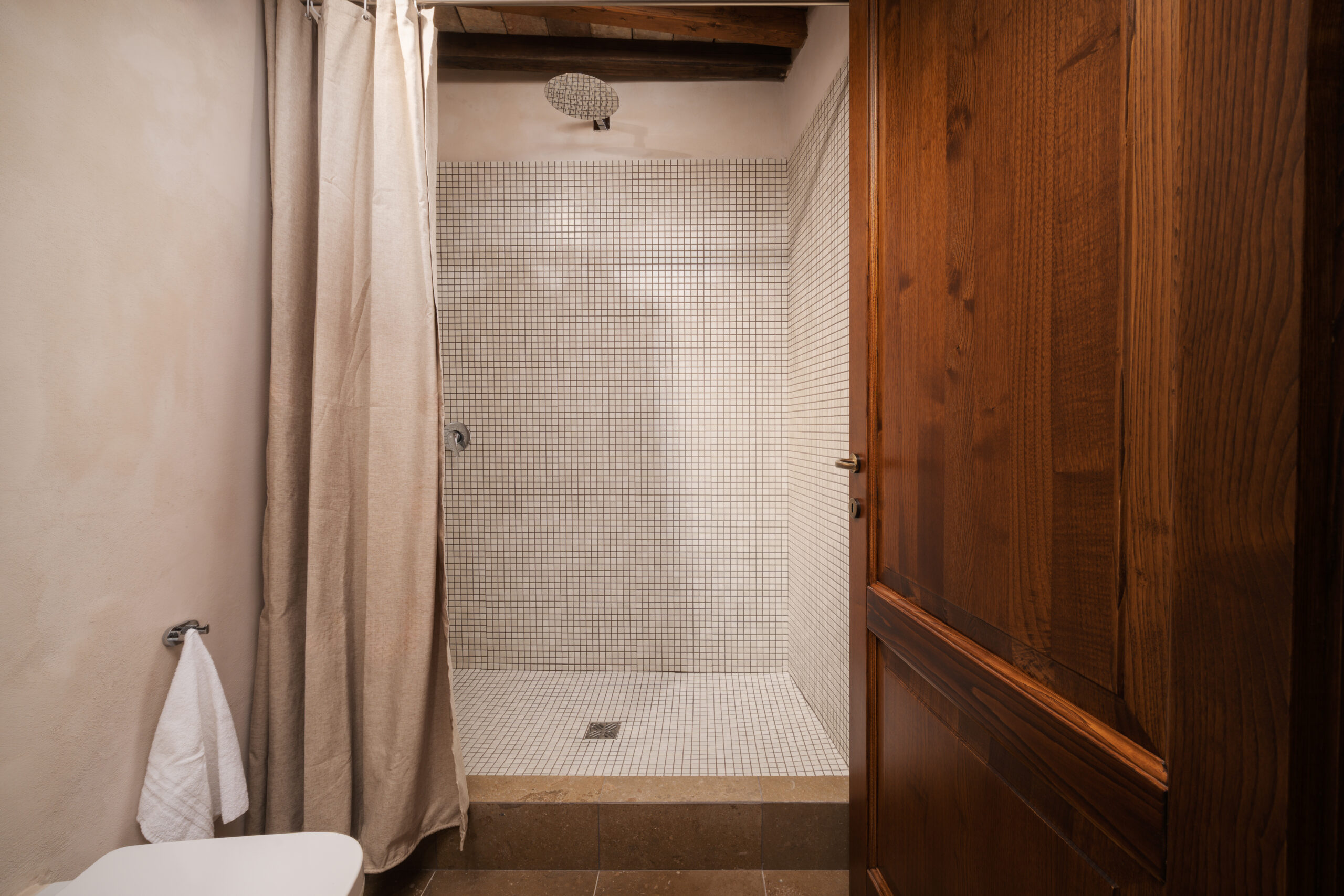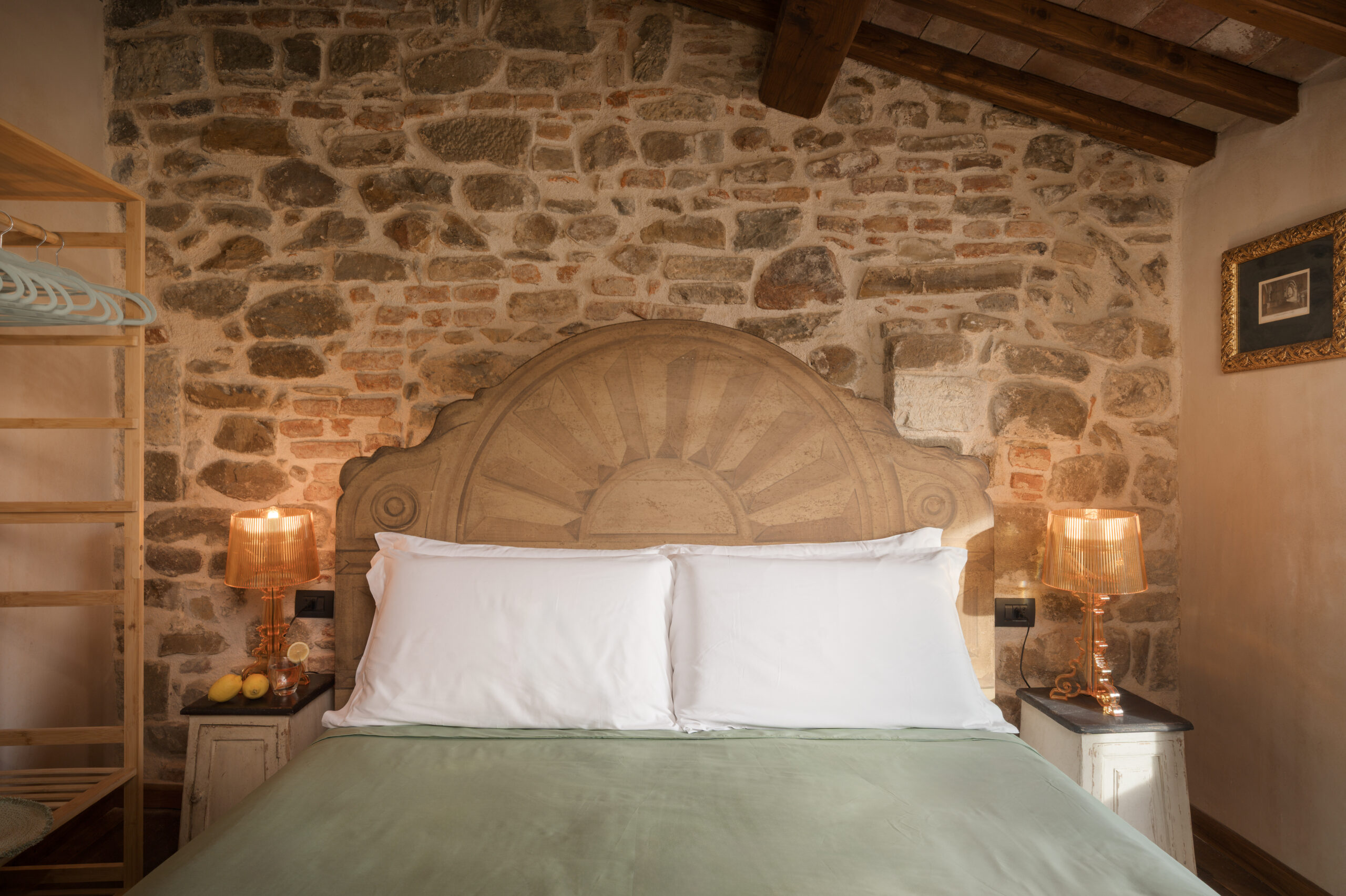 Ogni appartamento è stato ristrutturato utilizzando materiali antichi e di alta qualità, scelti per preservare l’anima originaria dell’edificio: pietra locale, travi in legno a vista, pavimenti in cotto antico fatto a mano e dettagli artigianali che raccontano secoli di storia.